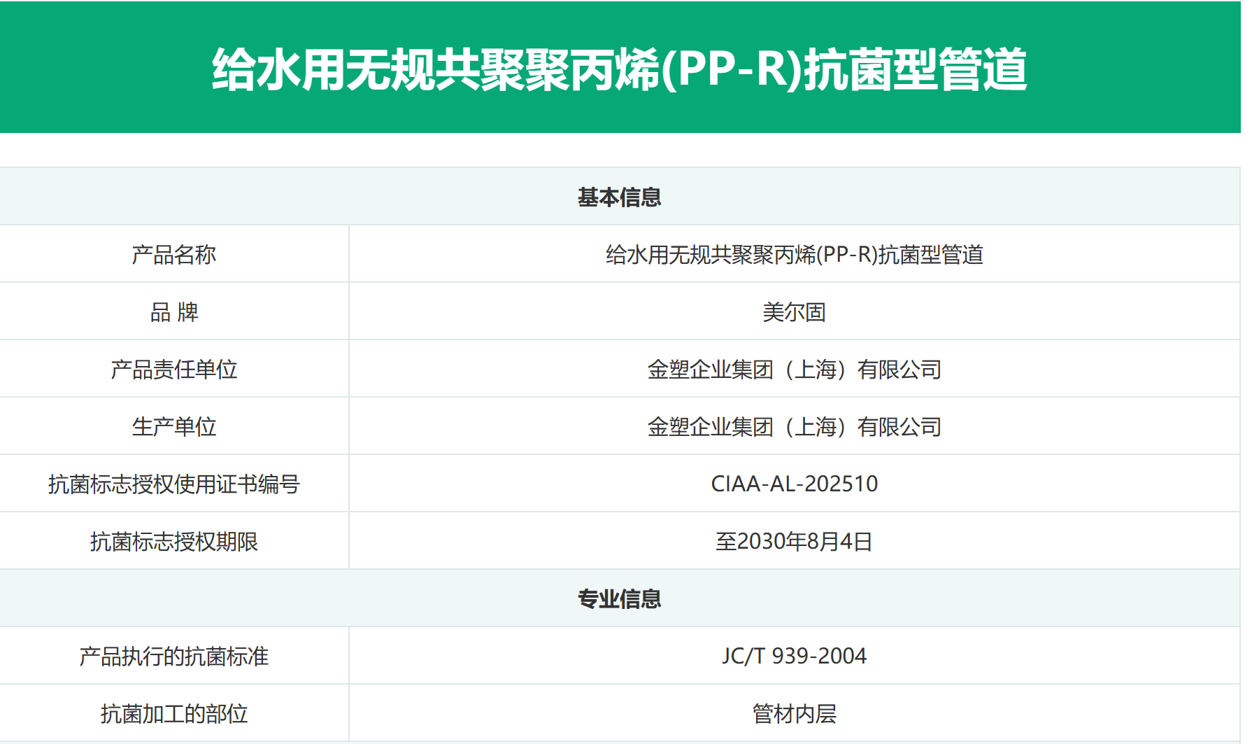 抗菌PP-R管性能引領(lǐng)業(yè)界追求,金塑企業(yè)集團(上海)有限公司獲得抗菌標(biāo)志使用授權(quán)